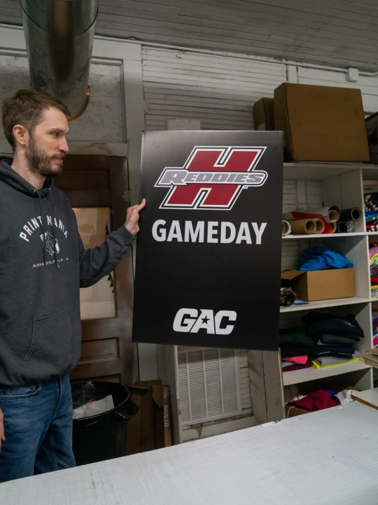 At Print Mania, we specialize in more than just apparel. While screen printing and embroidery are our most popular services, we also provide vinyl graphics, banners, trophies, engraving, promotional items, and online fundraising stores that make it easy for schools, teams, and businesses to raise money and show their pride.